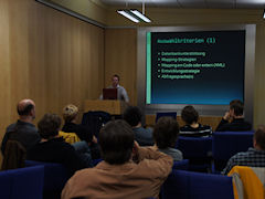 Der Hauptvortrag des Abends kam von Thomas Mentzel, der nach einer Einführung in ASP.NET MVC auf die Neuerungen in der kürzlich veröffentlichten zweiten Version dieses Frameworks einging.